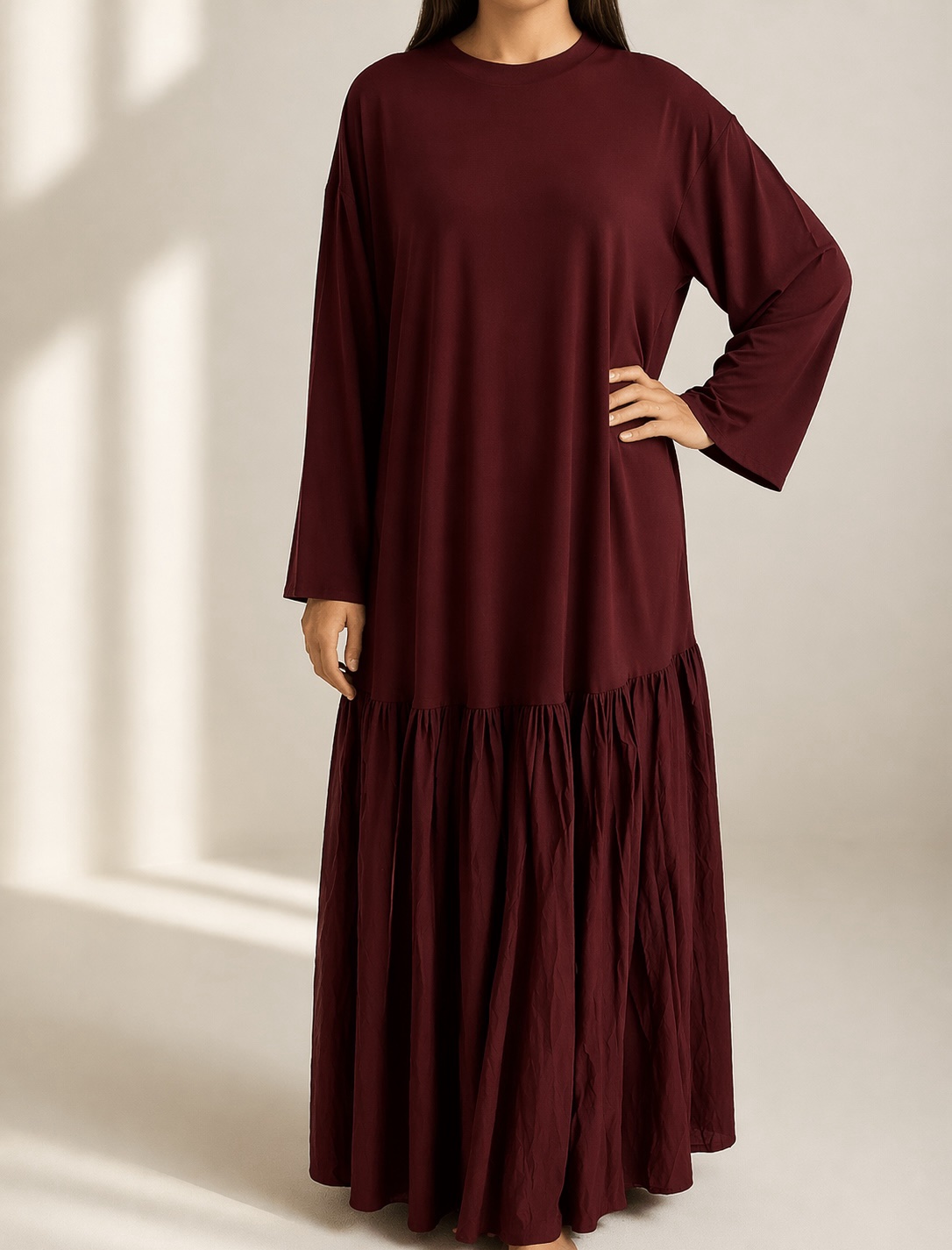 Une coupe, un caractère. Entre modernité et confort, cette robe mise tout sur le volume de sa jupe plissée. Un design audacieux pour celles qui recherchent une silhouette graphique et contemporaine.