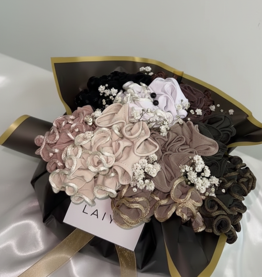 Bouquet Impérial LAIYA : Composition de 5 Hijabs Frisés & Accessoires